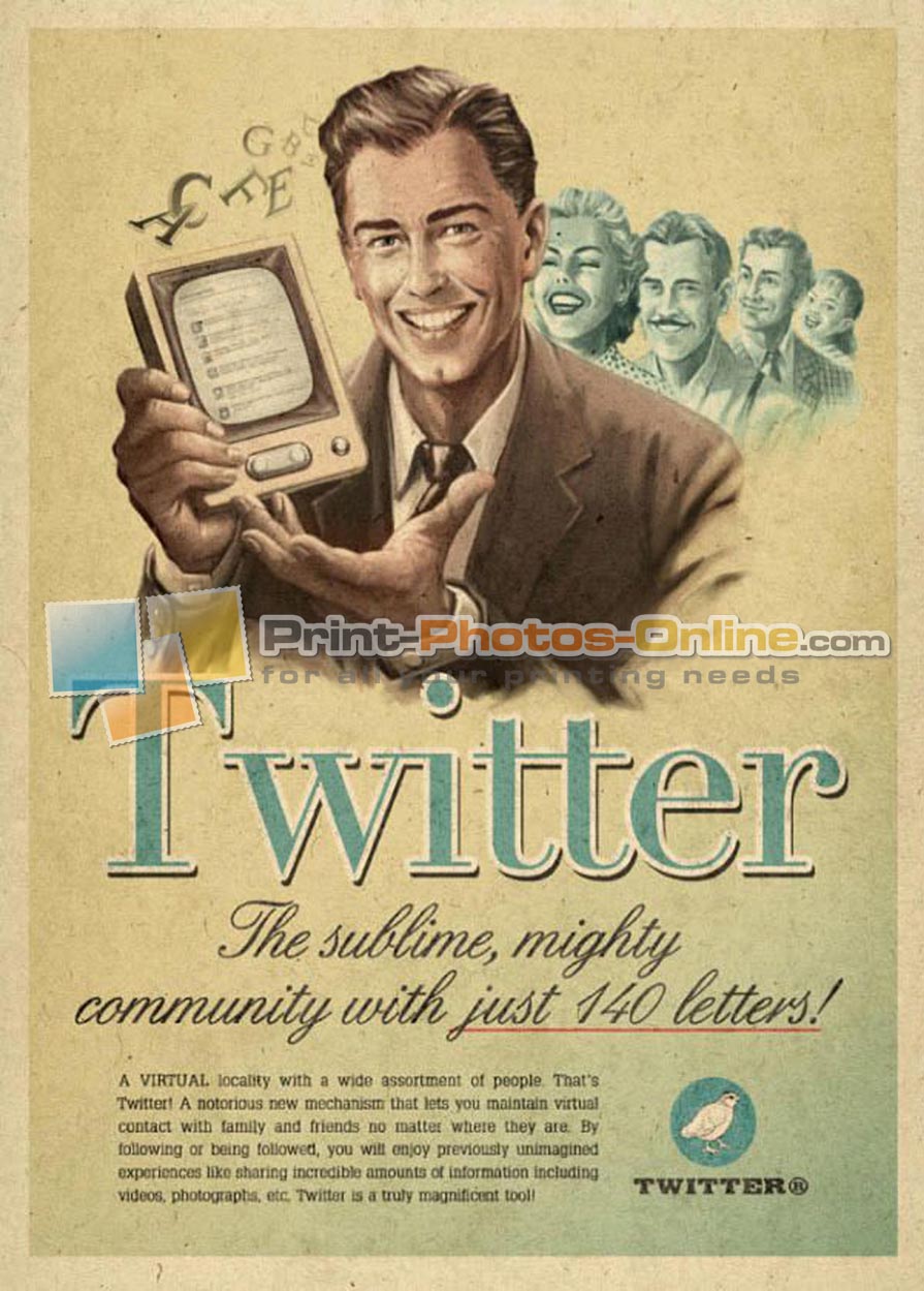 Πίνακας σε φωτογραφία ή σε καμβά με ρετρό διαφημίσεις #0034 - Twitter από το Print-Photos-Online.com!