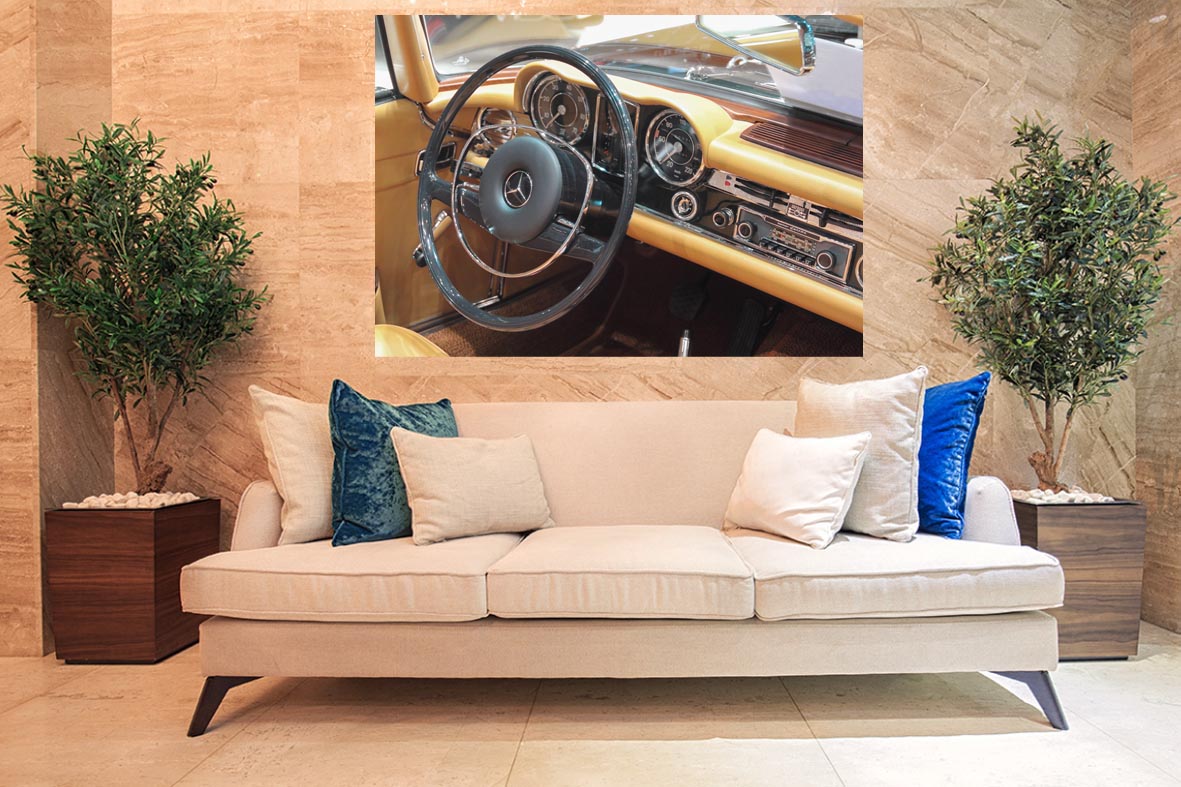 Ο Κώστας είναι λάτρης των κλασικών αυτοκινήτων και ήθελε να ενσωματώσει την αγάπη του για το αυτοκίνητο στο σαλόνι του, χωρίς να καταλήξει με έναν υπερβολικά φορτωμένο χώρο. Επιλέγοντας έναν πίνακα σε καμβά με φωτογραφία του αγαπημένου του κλασικού αυτοκινήτου, η διακόσμηση του χώρου του άλλαξε ριζικά.