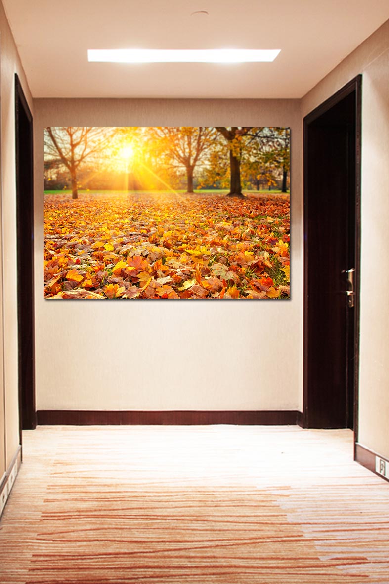 Ένας πίνακας με χρυσό φως ή ηλιοβασίλεμα μέσα σε φθινοπωρινό δάσος αποπνέει ηρεμία και πληρότητα. Σε έναν χώρο γραφείου ή καθιστικού, το χρυσό φως λειτουργεί σχεδόν θεραπευτικά, ανακουφίζοντας από το στρες και ενισχύοντας την αίσθηση επιτυχίας και εσωτερικής ισορροπίας.
