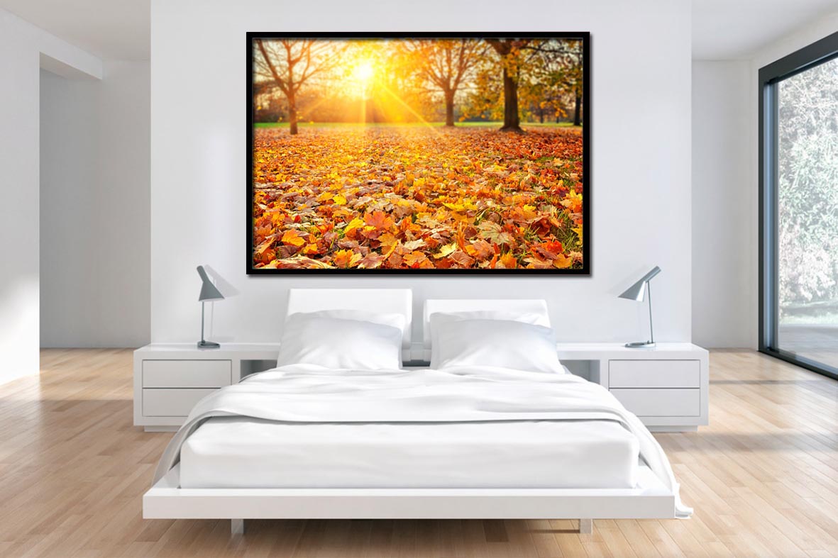 Ένας φθινοπωρινός πίνακας με δάσος μπορεί να κάνει ένα μεγάλο σαλόνι να δείχνει πιο ζεστό. Ένας πίνακας με δρόμο μέσα στα φύλλα μπορεί να προσθέσει βάθος σε έναν στενό διάδρομο. Ένα ήσυχο φθινοπωρινό ηλιοβασίλεμα πάνω από μια λίμνη μπορεί να κάνει ένα υπνοδωμάτιο πιο ήρεμο και ρομαντικό.