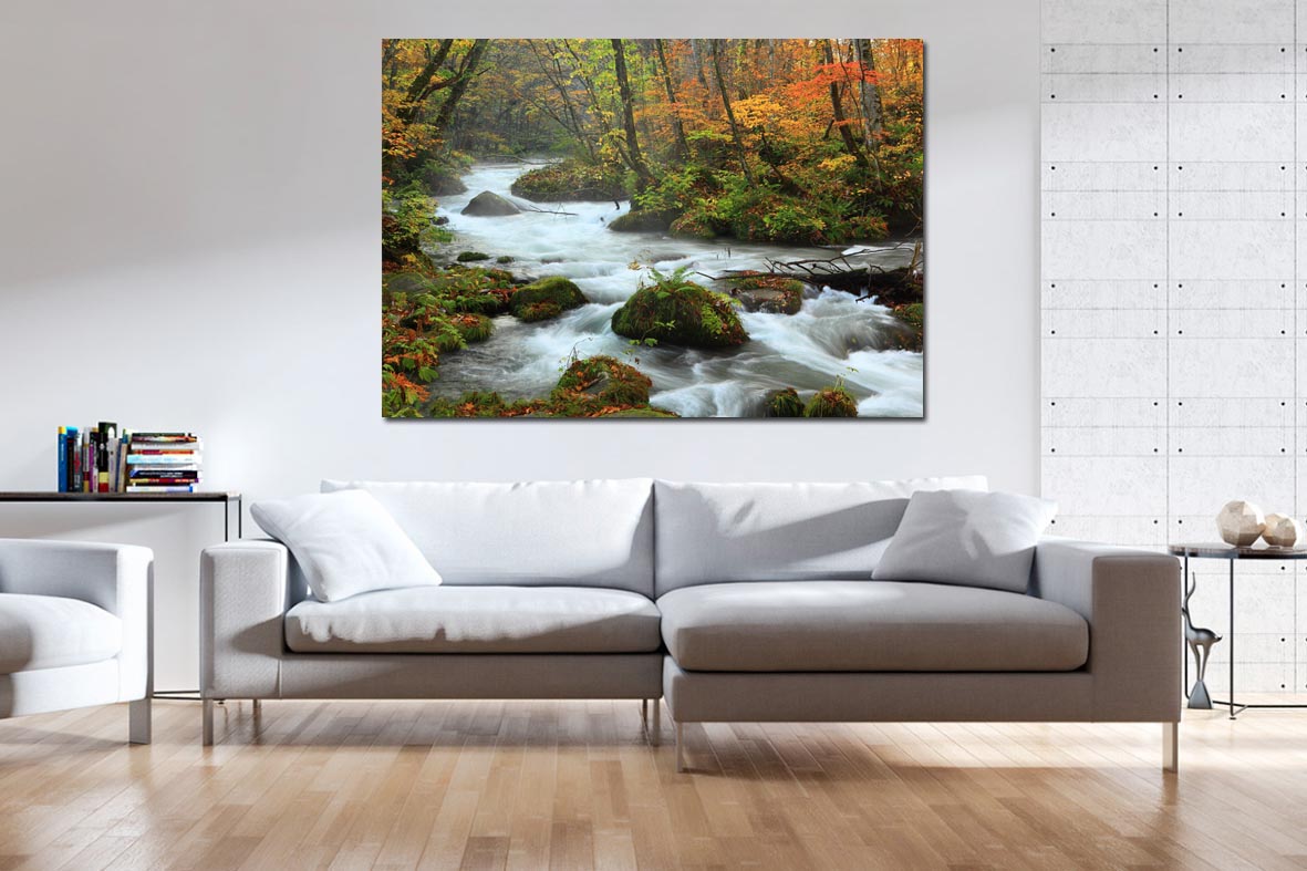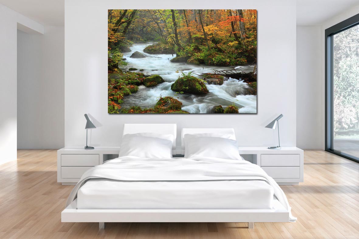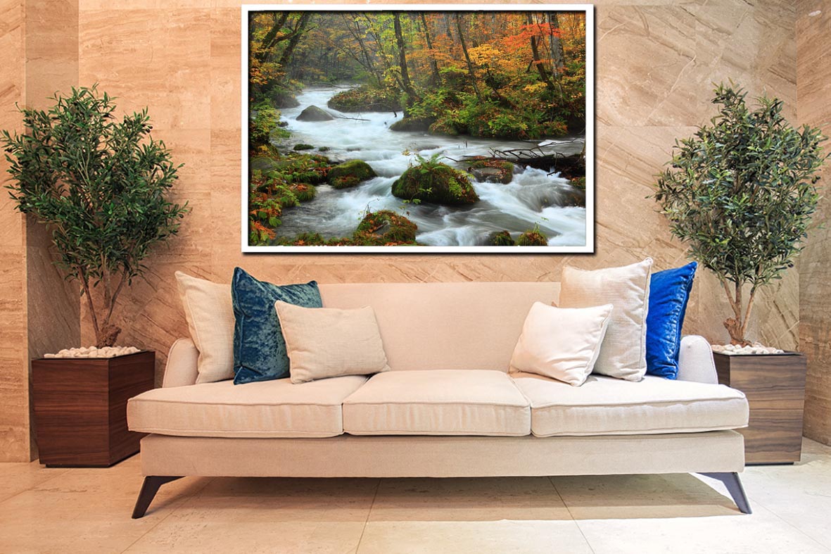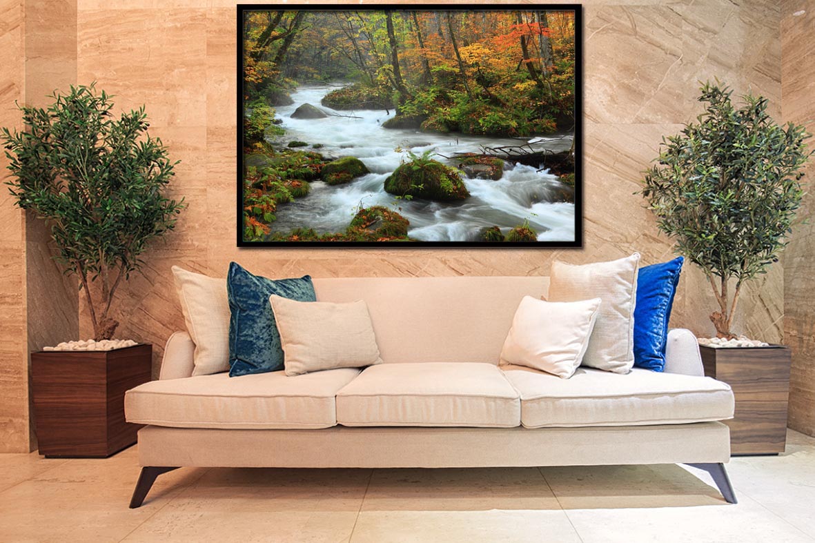 Οι πίνακες του Print-Photos-Online.com με φθινοπωρινά τοπία φέρνουν αυτήν τη θεραπευτική επίδραση μέσα στο σπίτι. Κάθε εικόνα λειτουργεί σαν αναπνοή γαλήνης μέσα στην καθημερινότητα: – Μια ομίχλη που απλώνεται σε ένα βουνό. – Ένα ποτάμι που κυλά ανάμεσα σε δέντρα. – Ένα μονοπάτι καλυμμένο με φύλλα.