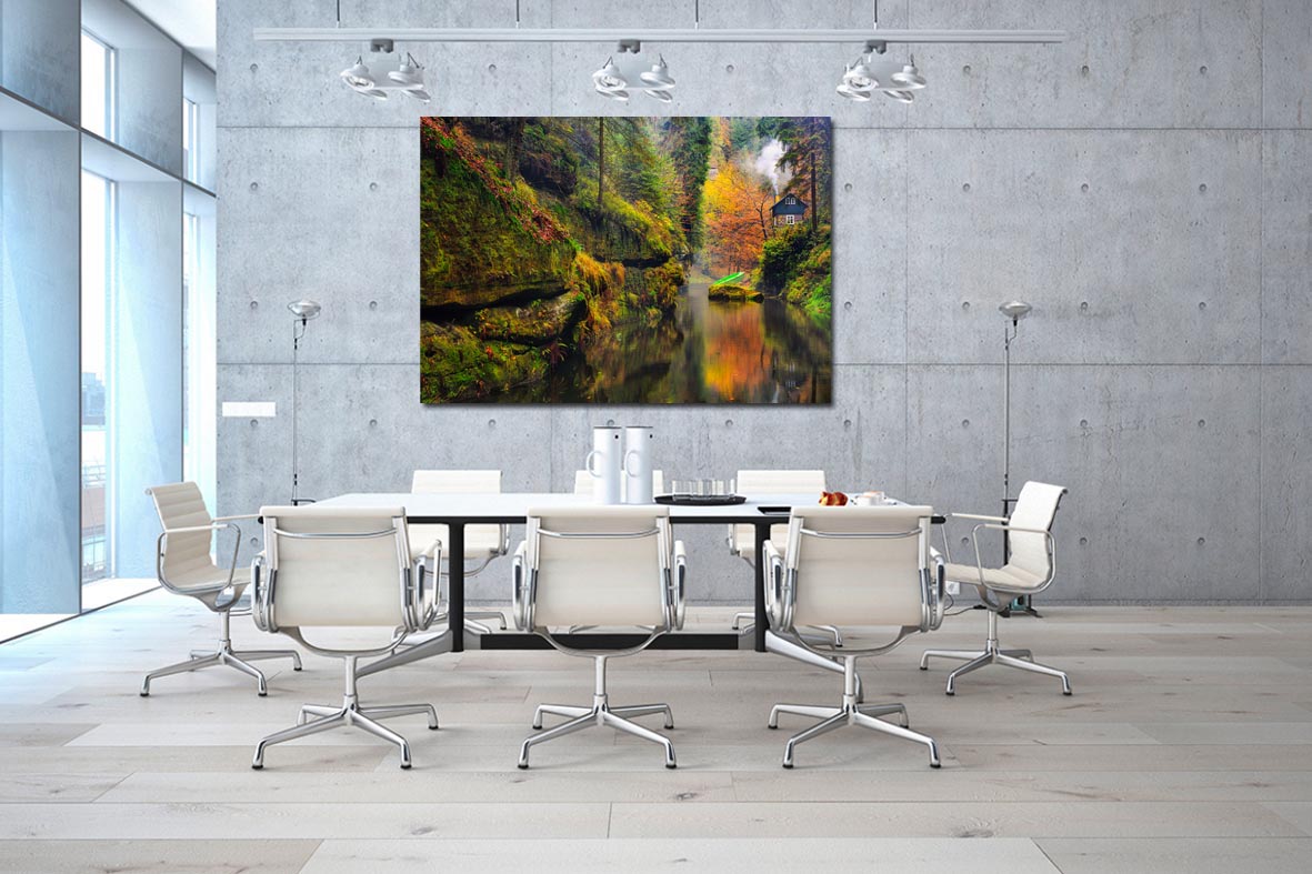 Ένας πίνακας με χρυσό φως ή ηλιοβασίλεμα μέσα σε φθινοπωρινό δάσος αποπνέει ηρεμία και πληρότητα. Σε έναν χώρο γραφείου ή καθιστικού, το χρυσό φως λειτουργεί σχεδόν θεραπευτικά, ανακουφίζοντας από το στρες και ενισχύοντας την αίσθηση επιτυχίας και εσωτερικής ισορροπίας.
